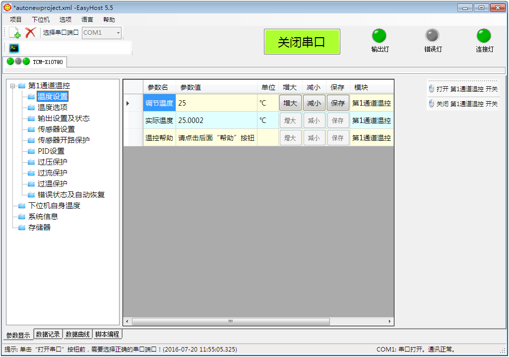 各種參數都可以在用戶軟件中調節、設置、保存,方便用戶在不同的溫控系統中使用該溫控模塊